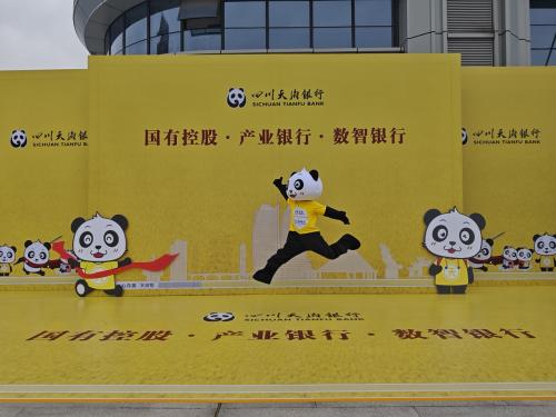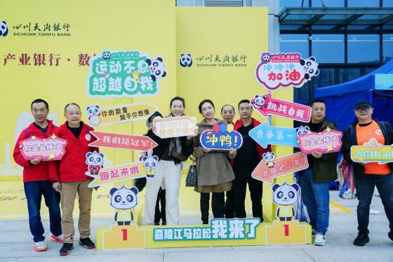 暖心的“天府能量站”:在起终点核心区域,我们精心打造的“天府能量站”成为人气焦点。融合了熊猫IP元素的主题打卡墙前,跑者和市民争相留下与我行的难忘瞬间。