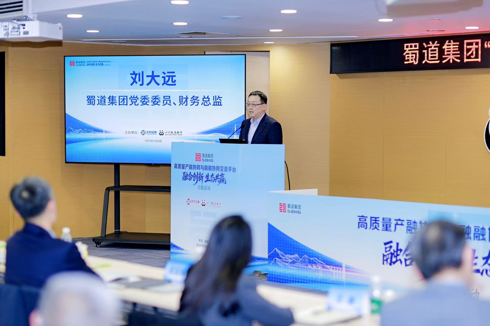 12月3日,蜀道集团“融合创新·生态共赢”主题活动在成都圆满举行。作为天府金融品牌旗下天府证券、天府银行首次联合面向集团内部企业开展的产融协同专项活动,为贯彻落实产融结合工作要求、深化内部上市公司与金融企业协同交流搭建了重要平台。蜀道集团党委委员、财务总监刘大远出席活动并讲话。