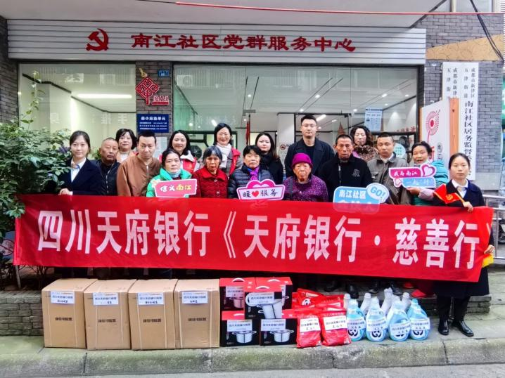 活动中,四川天府银行成都自贸区支行与辖内东寺社区携手开展“情暖初冬”济困慈善捐赠主题活动,为社区困难群众送去了大米、食用油、纸巾等日常生活必需品,给大家送去实实在在的帮助。四川天府银行成都新津支行则与新津区南江社区携手,为社区困难群众送去冬日关怀。同样,四川天府银行成都成华支行协同猛追湾街道培华路社区、建华社区、建中社区举办捐赠活动,将慈善捐赠物资电热毯、食用油、大米分发到受捐人手中。