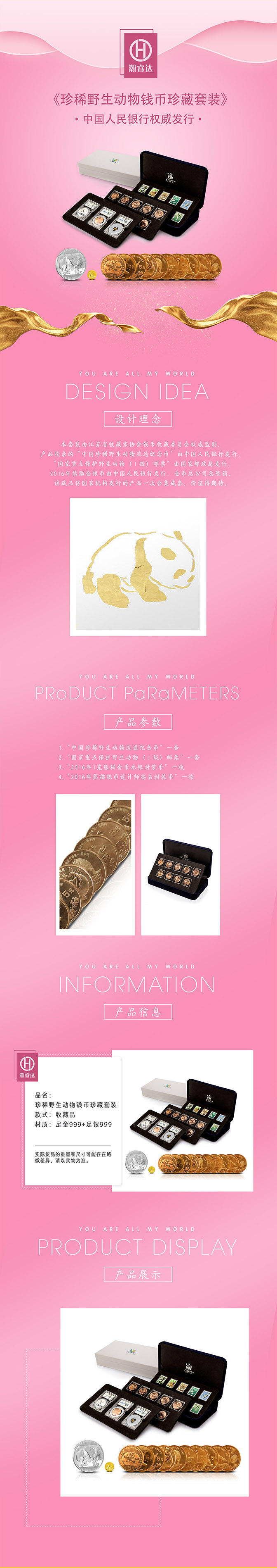 本套装由江苏省收藏家协会钱币收藏委员会权威监制,产品收录的“中国珍稀野生动物流通纪念币”由中国人民银行发行、“国家重点保护野生动物(Ⅰ级)邮票”由国家邮政局发行、2016年熊猫金银币由中国人民银行发行,金币总公司总经销。该藏品将国家机构发行的产品一次合集成套,价值得期待。